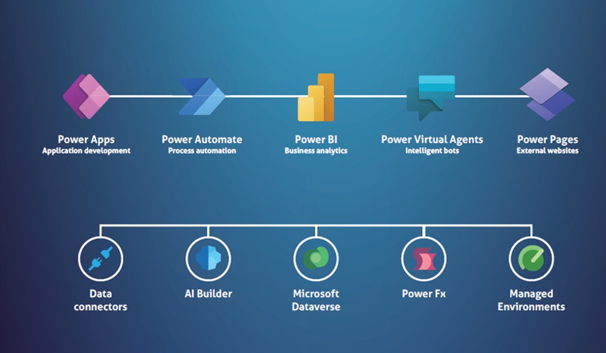 Microsoft Power Platform brings together Power BI, Power Apps, Power Automate and Power Virtual Agents to enables businesses to make sense of their data, build tailored solutions, automate organization wide processes and engage with people via intelligent chatbots.